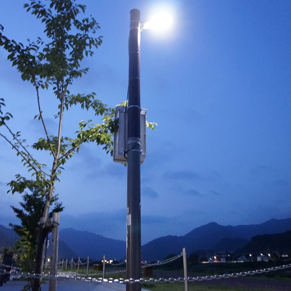 Solar street lights have been installed at the newest municipal park in Shisou city called “Seseragi Park”, because of recognized their convenience not to be required electrical installation work.